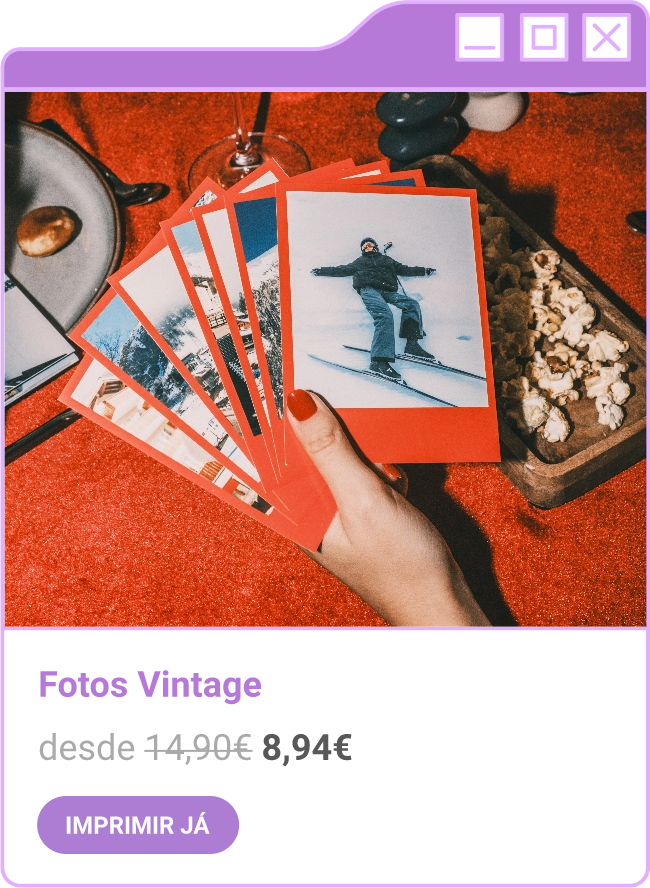 Condições da campanha: Campanha de 30% de desconto em todo o site sem valor mínimo de compra mediante a submissão do código FORTNIGHT30, e 40% de desconto em compras superiores a 60€ mediante a submissão do código FORTNIGHT40, válidas de 17/11/2025 a 01/12/2025. Campanhas não acumuláveis com outras campanhas/vouchers em vigor. Packs de Fotos Standard 10x15cm e 15x20cm, Fotos 24h, Telas Sintéticas e produtos de Stock Off não incluídos.